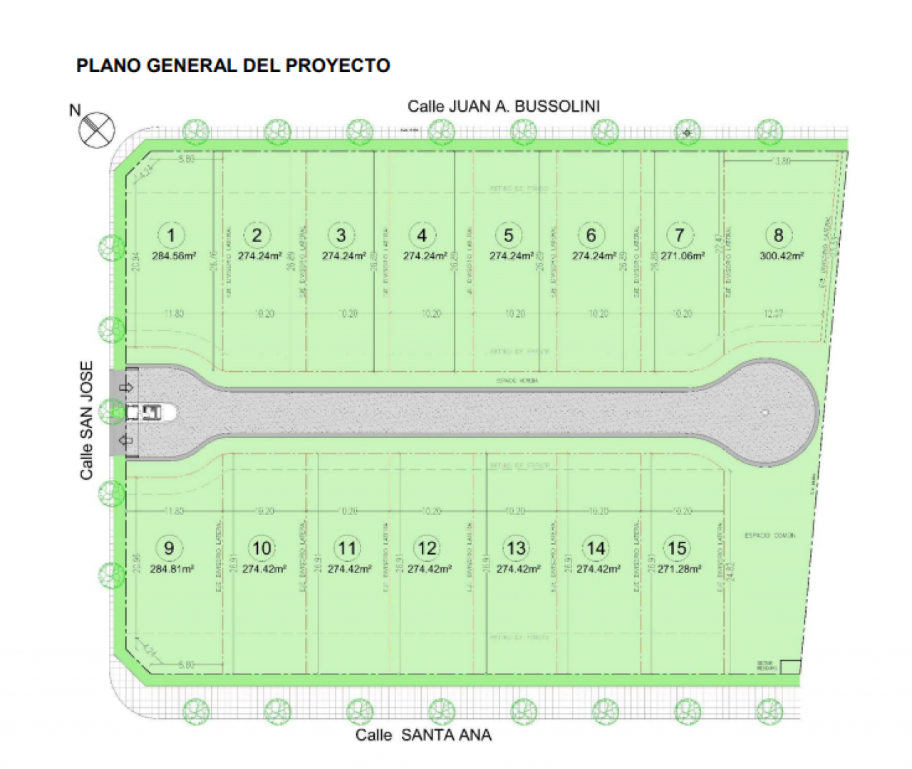 El proyecto se dividirá en 15 lotes con superficies que varían desde 274,24m² hasta el