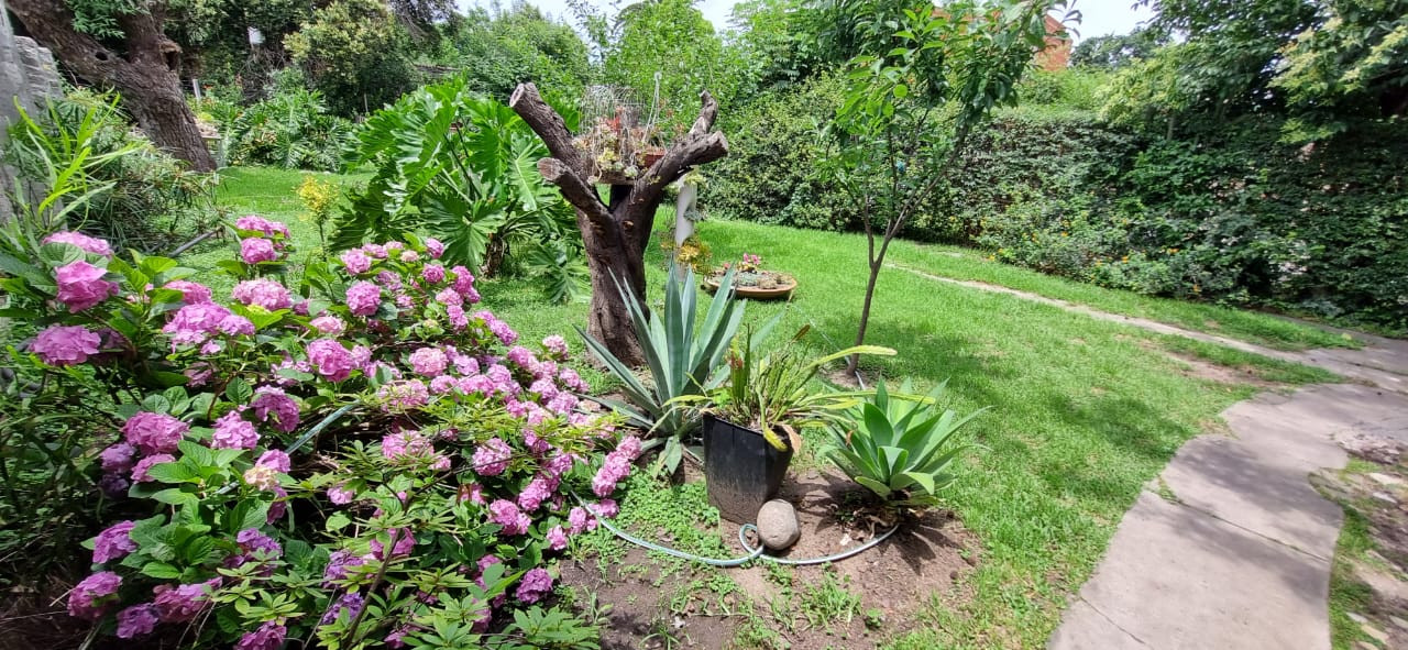 Al salir al parque desde la cocina, tenemos una amplia galeria y un galpon multiuso cosas. El parque esta especialmente diseñado con plantas.-
