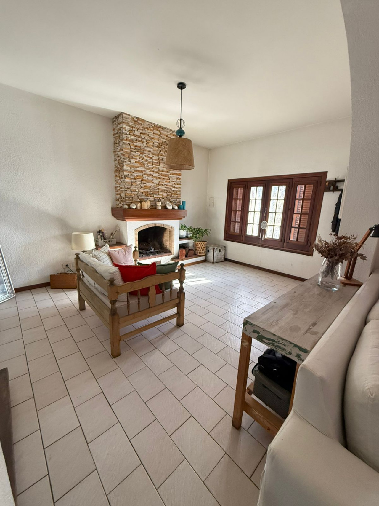 P.Baja : jardín de entrada -entrada para auto y garage ,living comedor muy espacioso y con hogar a leña ,escritorio - escalera de madera- baño ,cocina separada con amoblamientos de bajo mesada y alacena,salida desde la cocina a la amplia galería con parrilla y cerramientos de vidrio