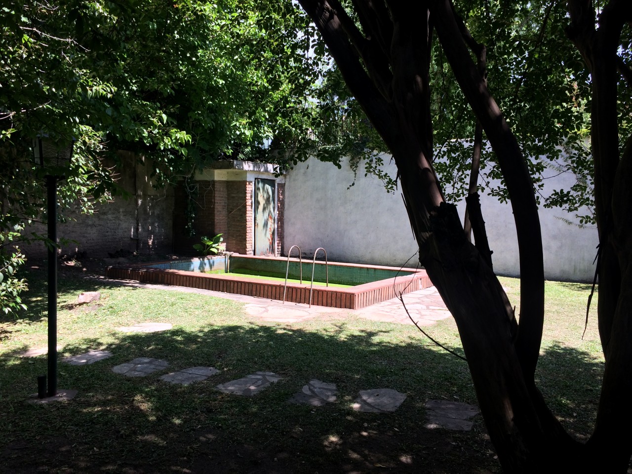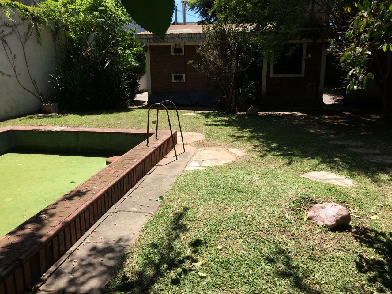 Casa americana, techo de losa a dos aguas, compuesta por dos dormitorios, living-comedor con hogar, baño instalado, lavadero, fondo libre con pileta y parrilla, entrada de coche pasante, lote de 12 x 28 mts.-