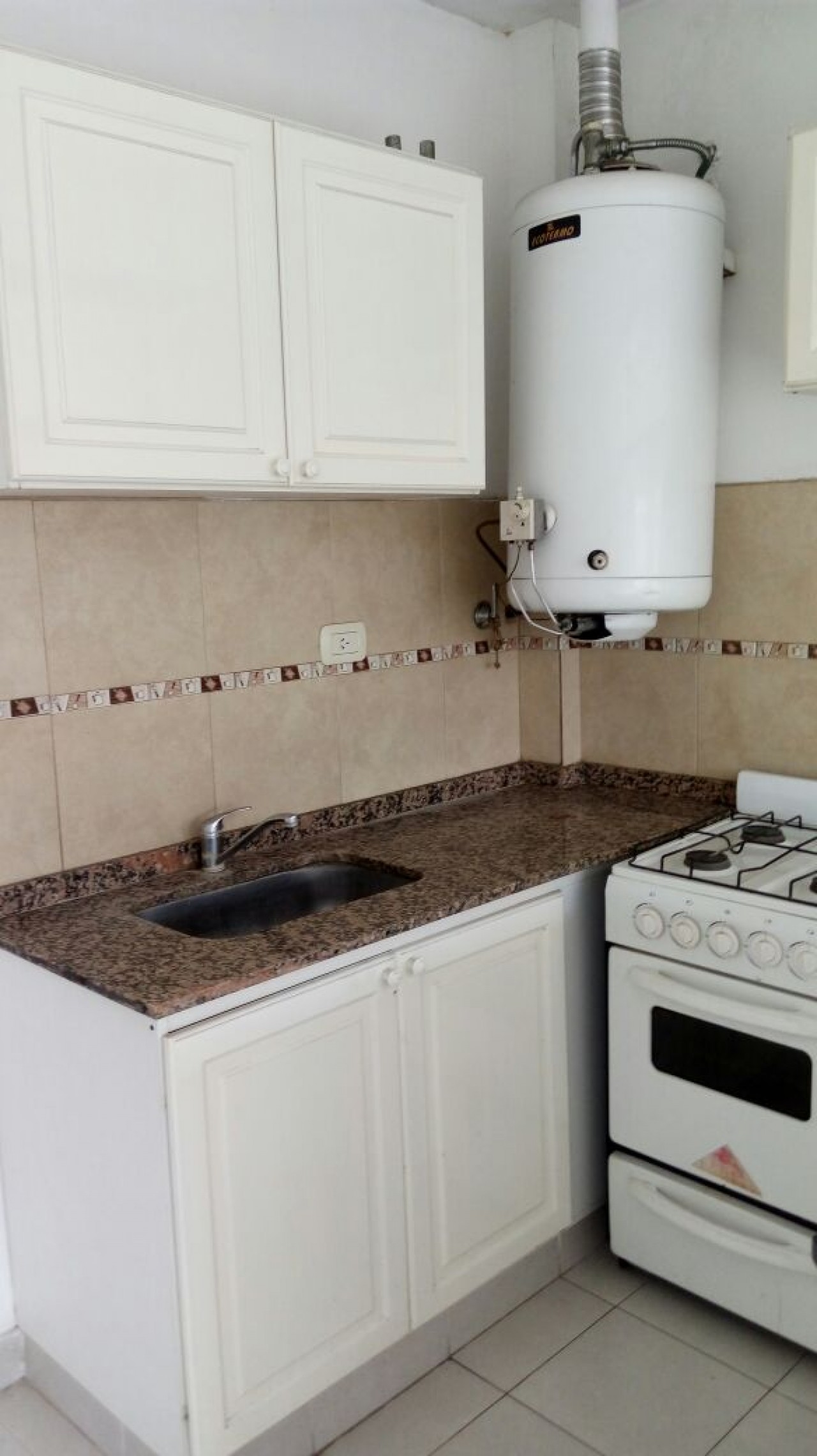 Departamento dos ambientes planta alta Estar comedor con cocina semi integrada amplia y luminosa con barra desayunadora, Dormitorio con placrd baño completo Espacio guarda coche cubierto.