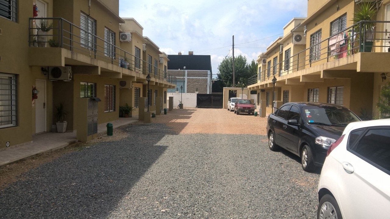 El departamento se encuentra en planta alta y Cuenta con : Cocina comedor totalmente amoblada, Baño, un dormitorio y espacio guarda coche dentro del complejo.