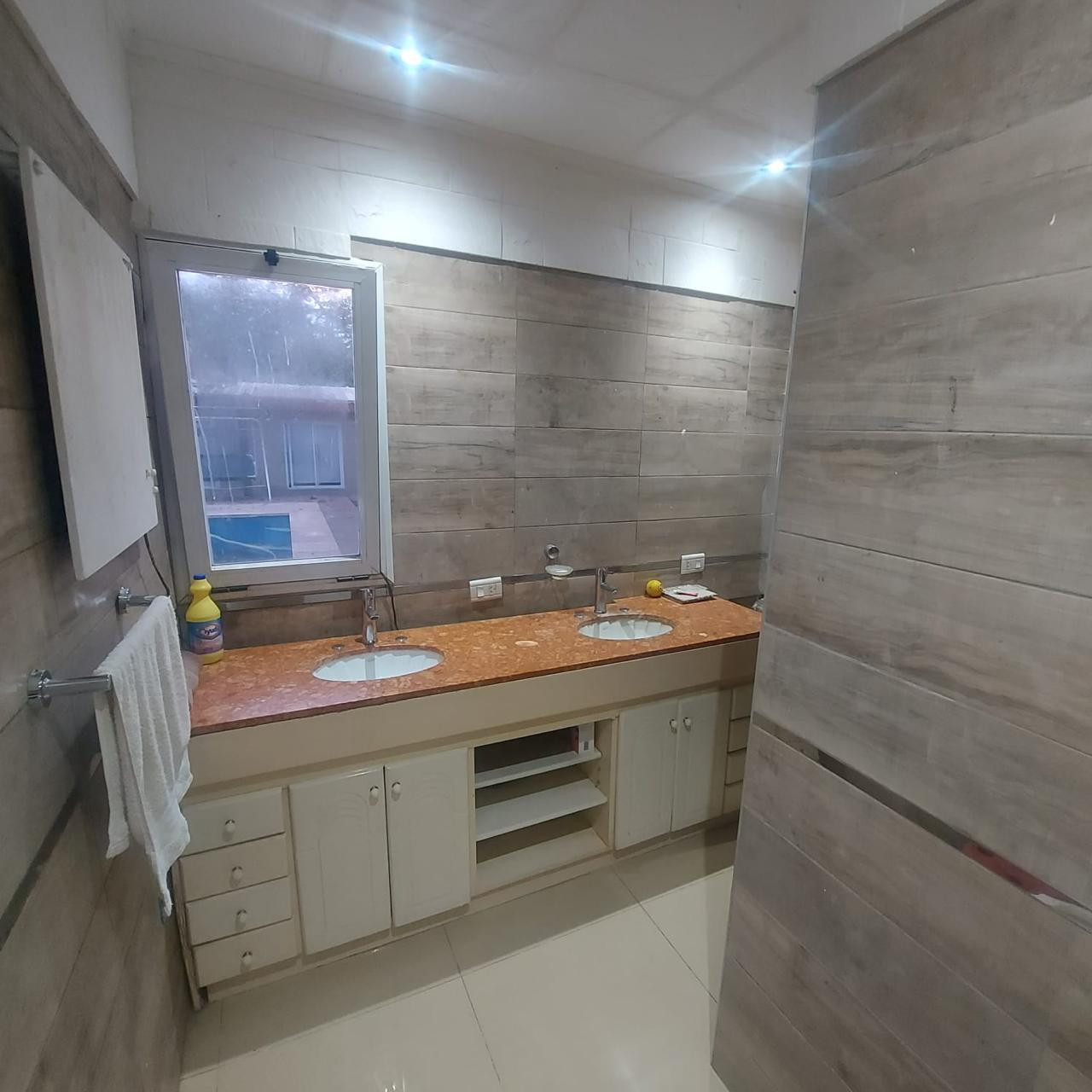 En la parte trasera de la propiedad se encuentra una pileta de 3x7, parrilla y parque. Asimismo se encuentra el acceso al anterior quincho el cual ahora se convirtio en otro departamento separado de la casa, un 2 ambientes con cocina comedor, baño y habitacion.