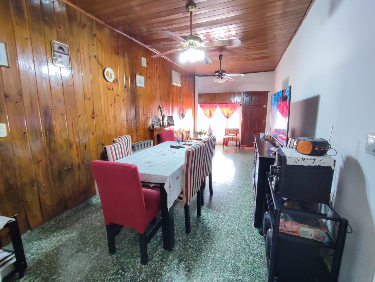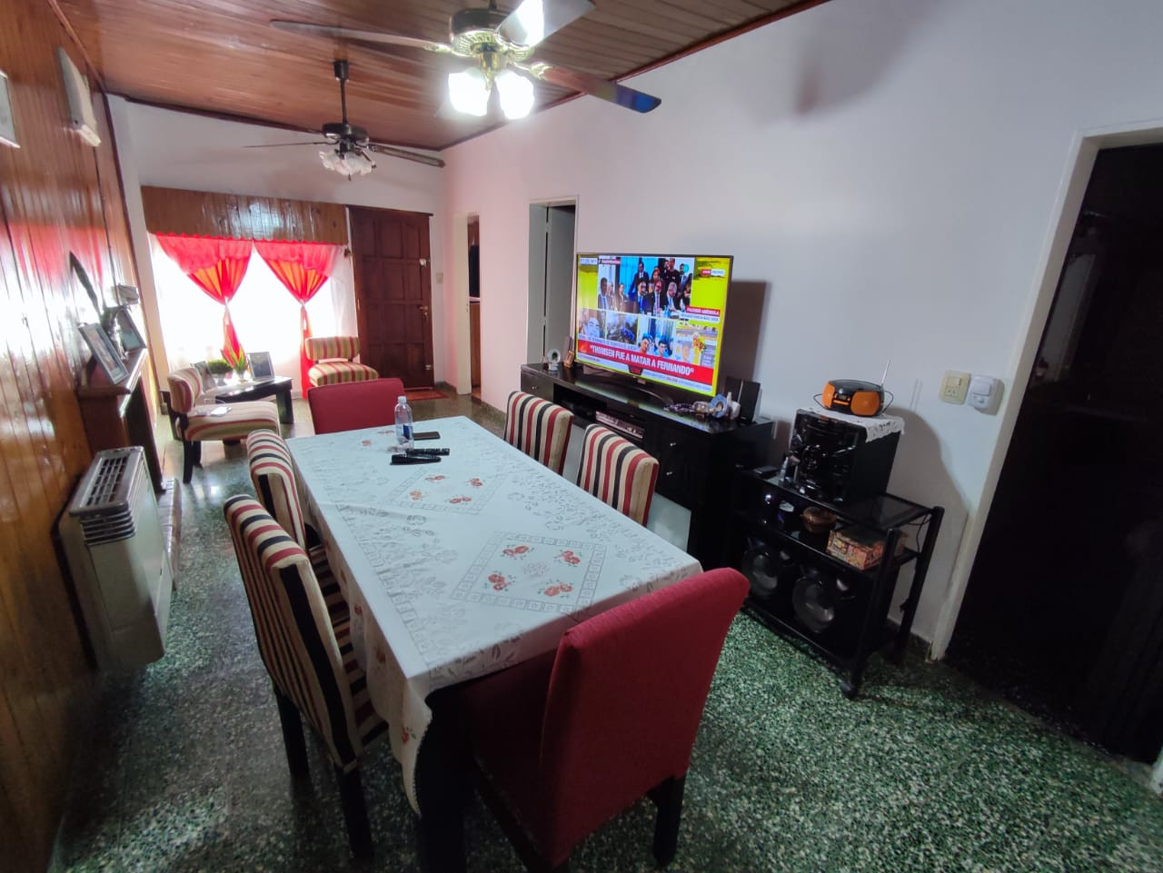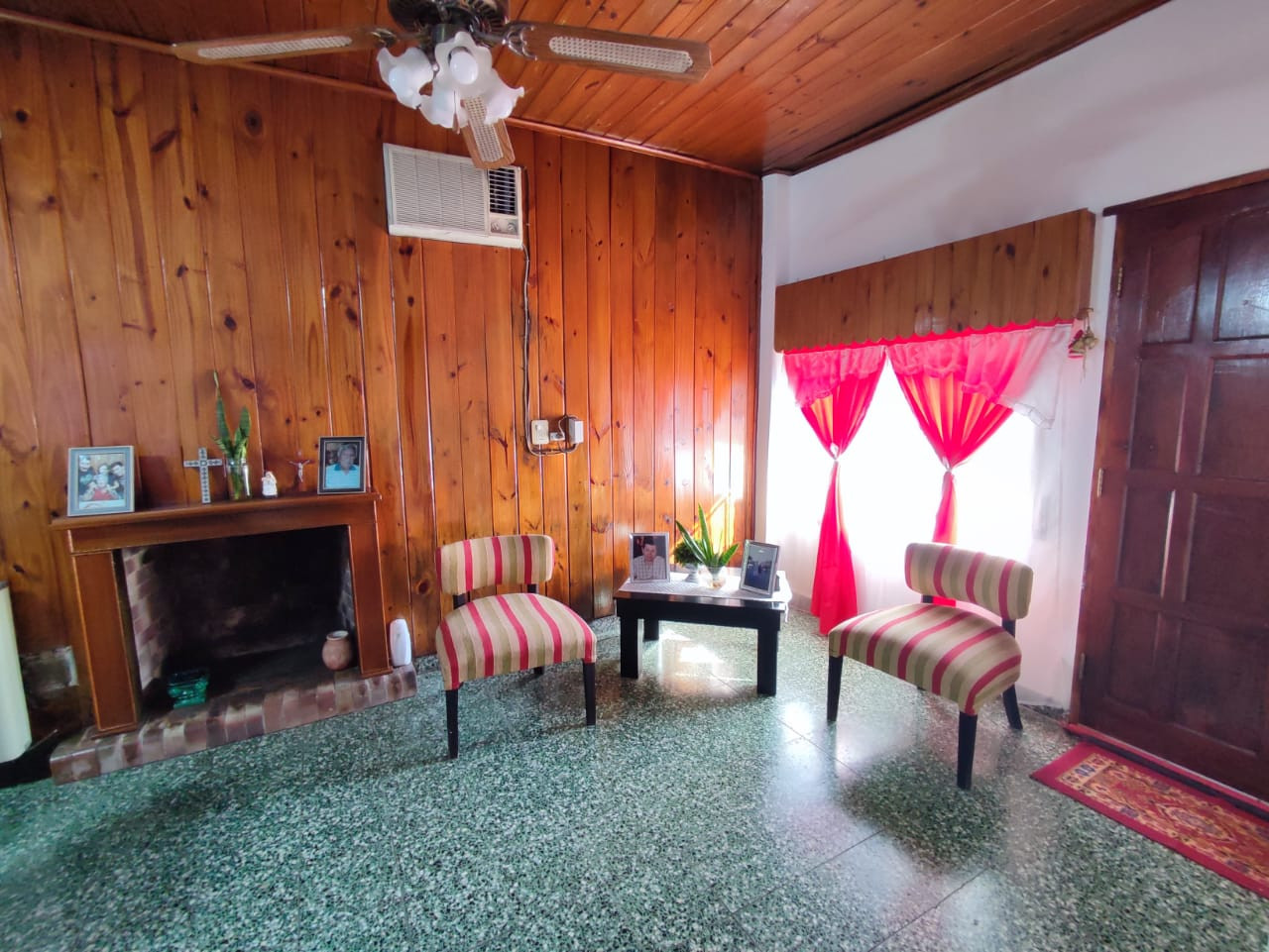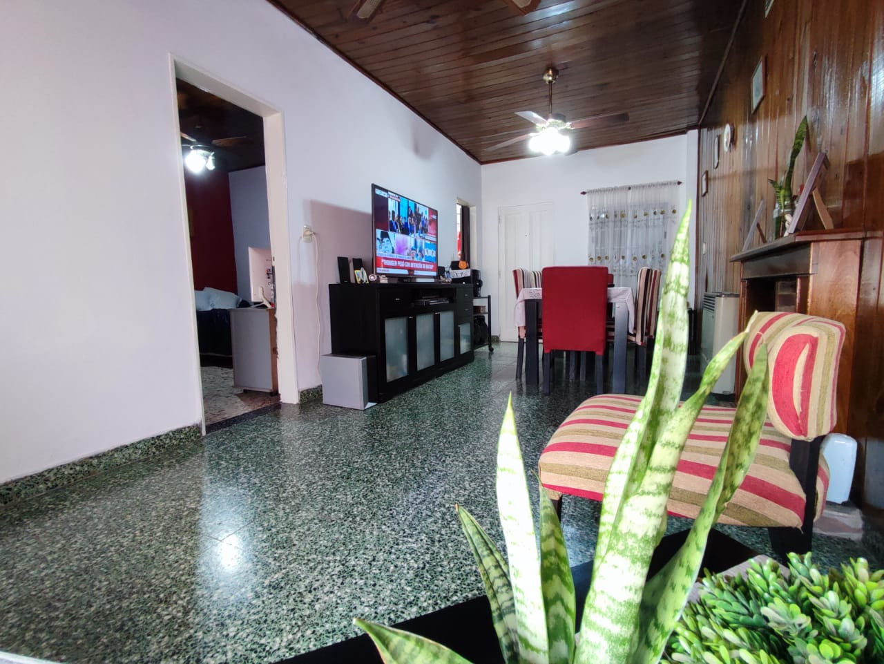 living-comedor con hogar a leño