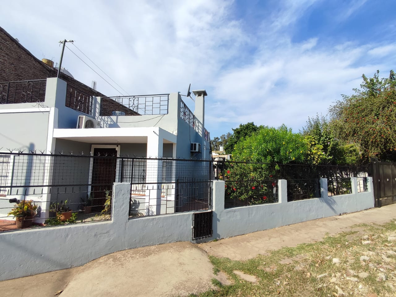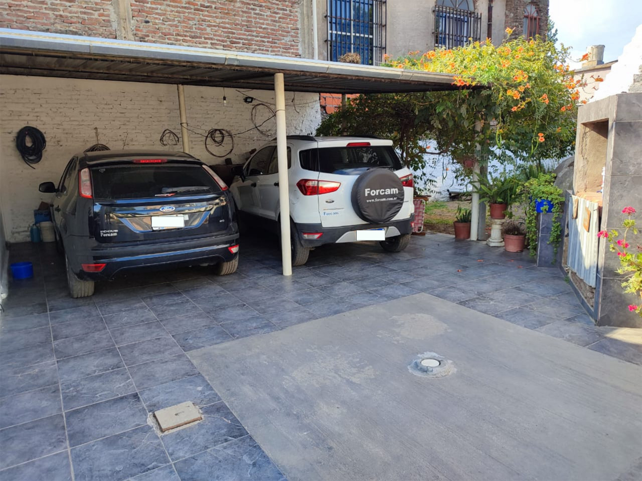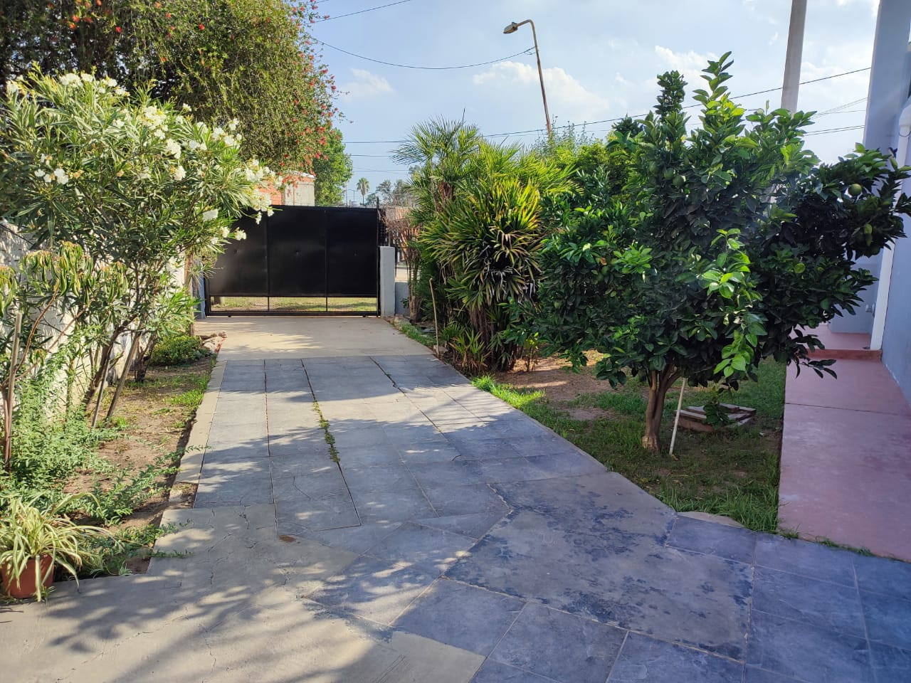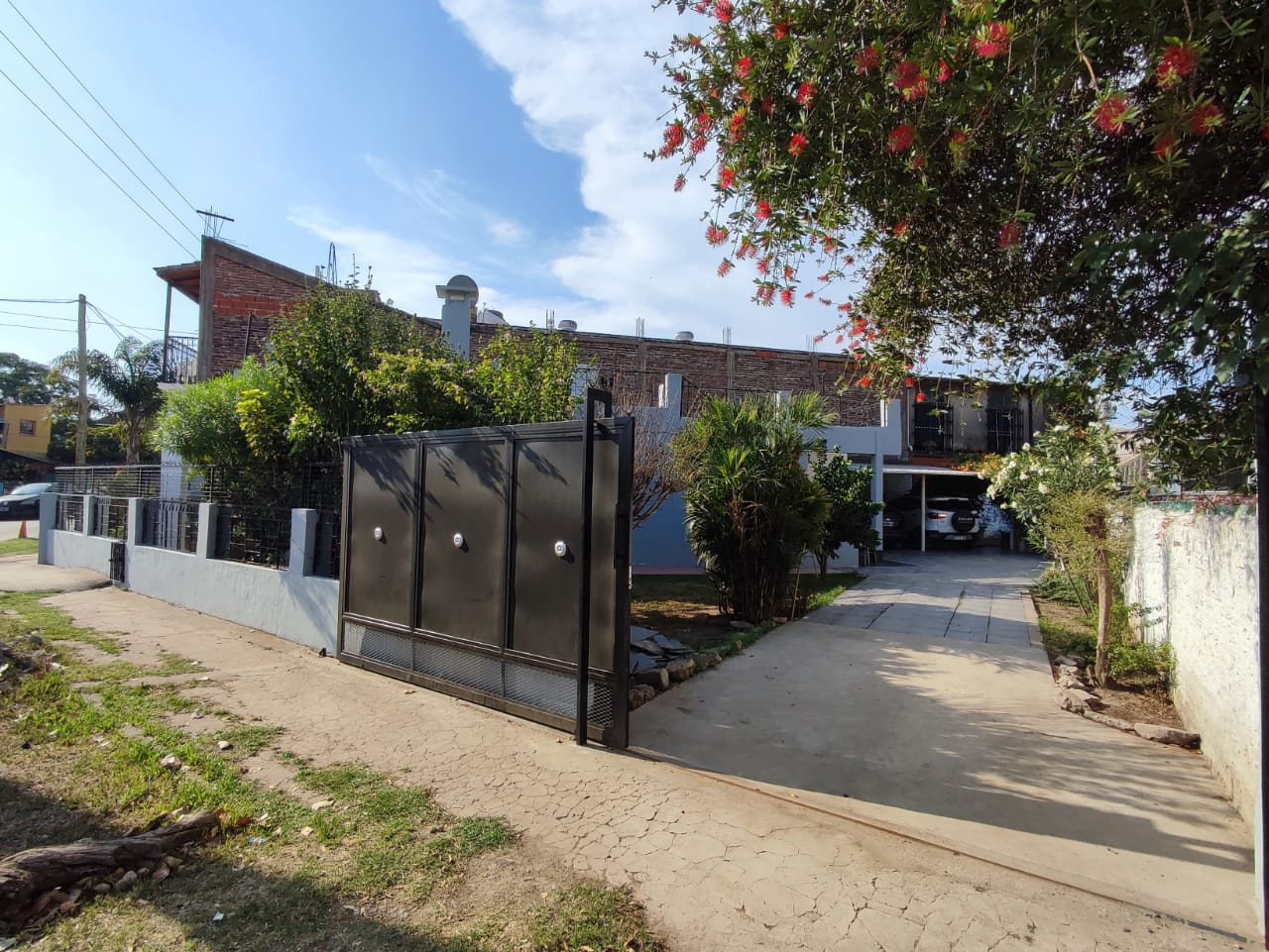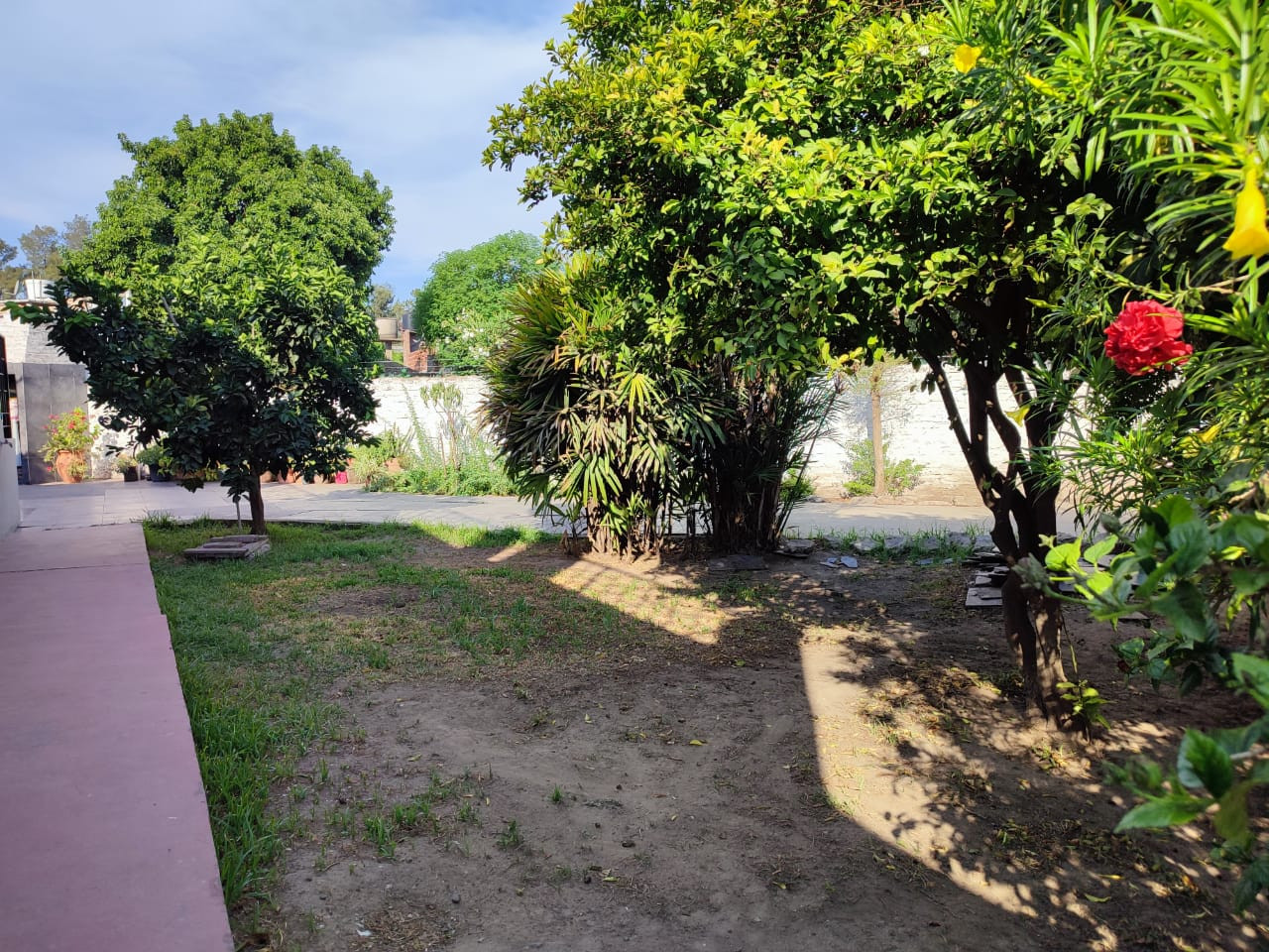 Amplio lote con lindo jardín, terreno en esquina con 21mt de frente y 30aprox de fondo, en forma de triangulo. /// espacio para 3 vehículos 2 semi-cubiertos....