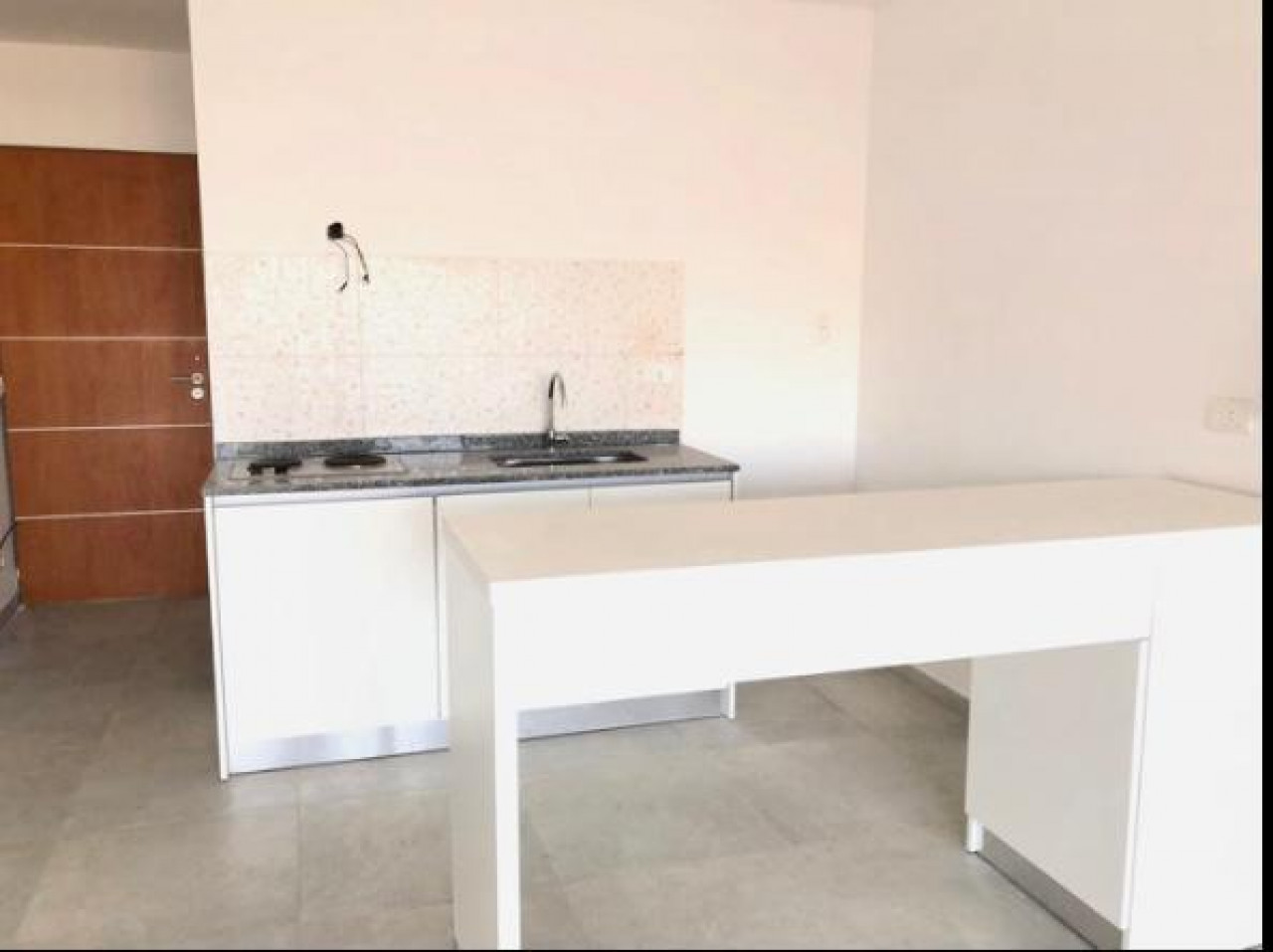 LIVING COMEDOR CON COCINA INTEGRADA, CON BARRA DIVISORIA, ANAFE, Y BAJO MESADA