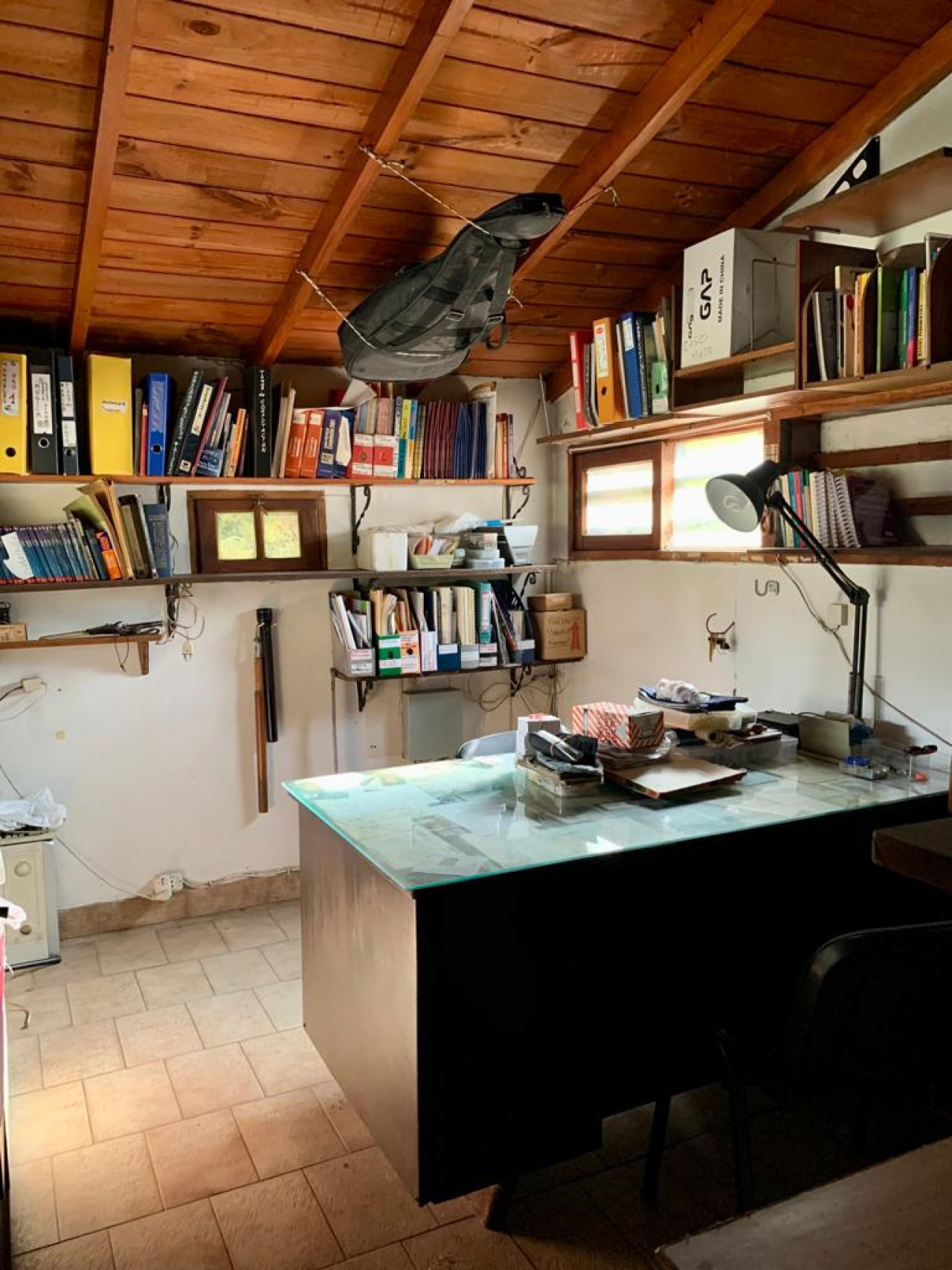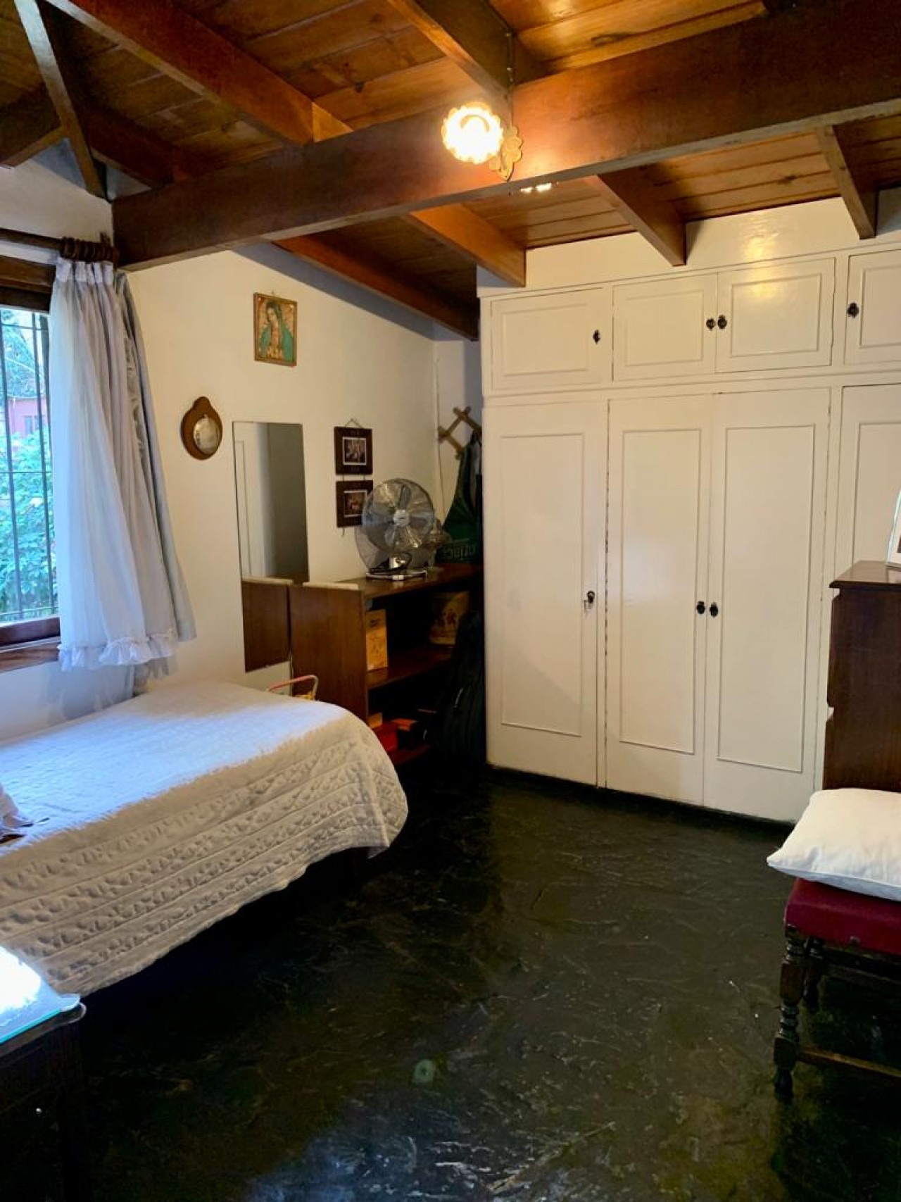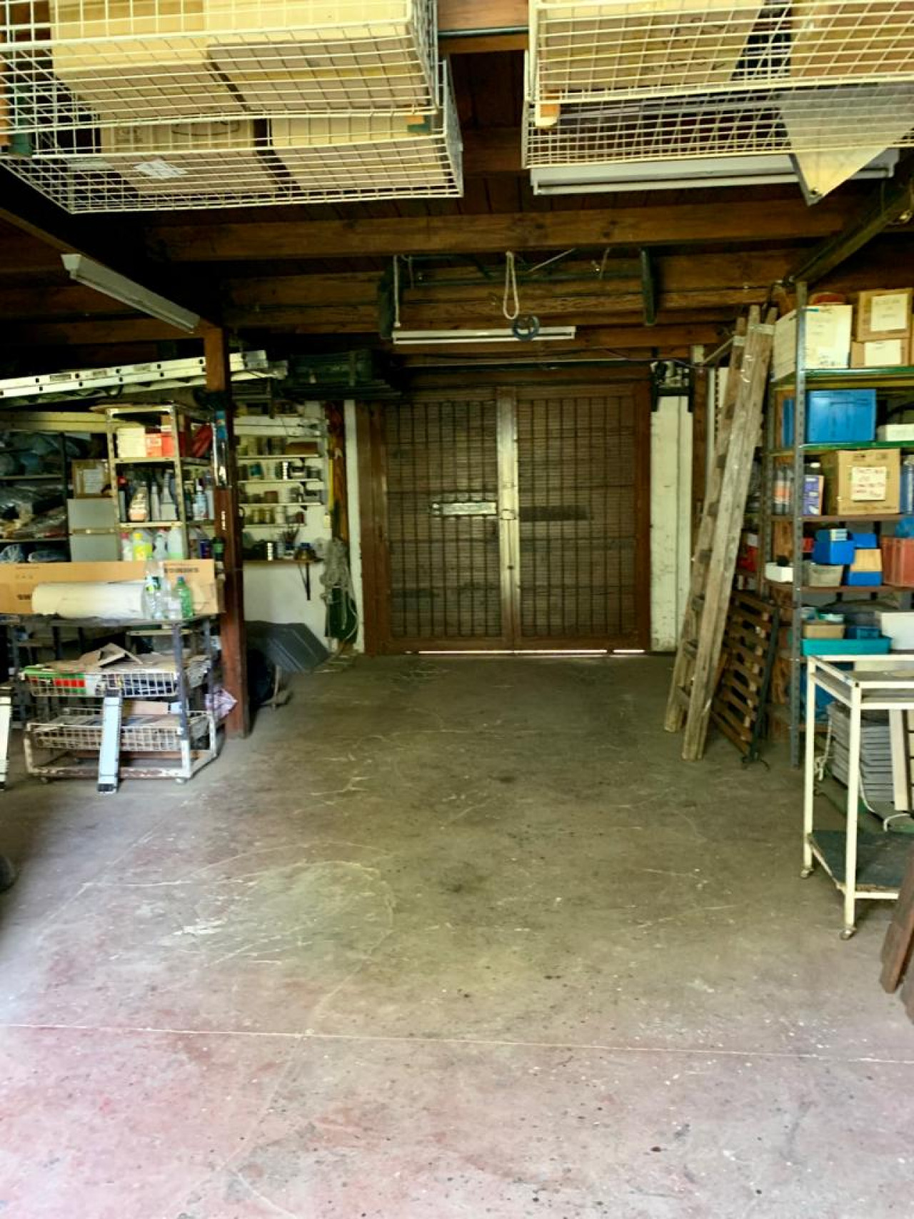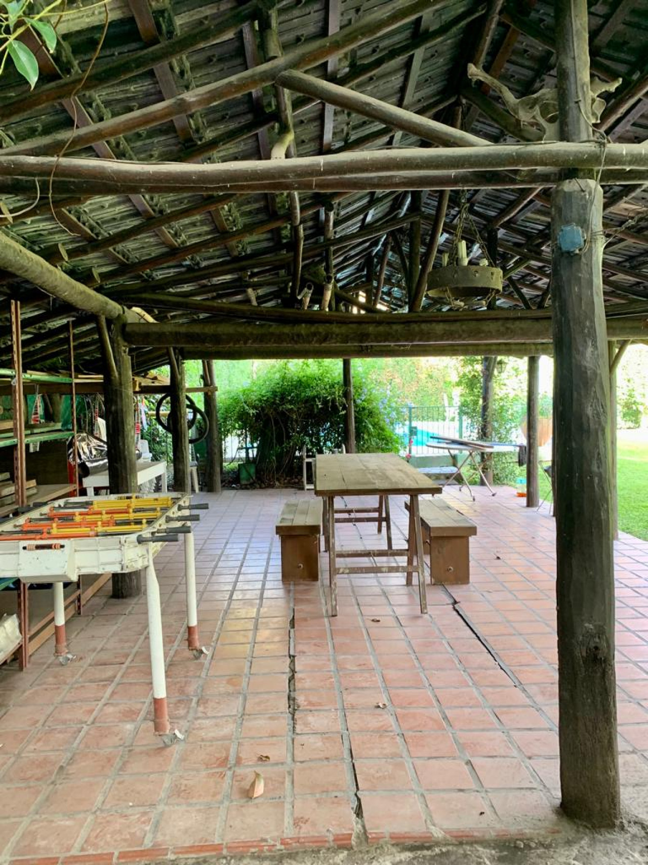 Garage cerrado con techo de madera con un amplio play room en entrepiso para usos múltiples,