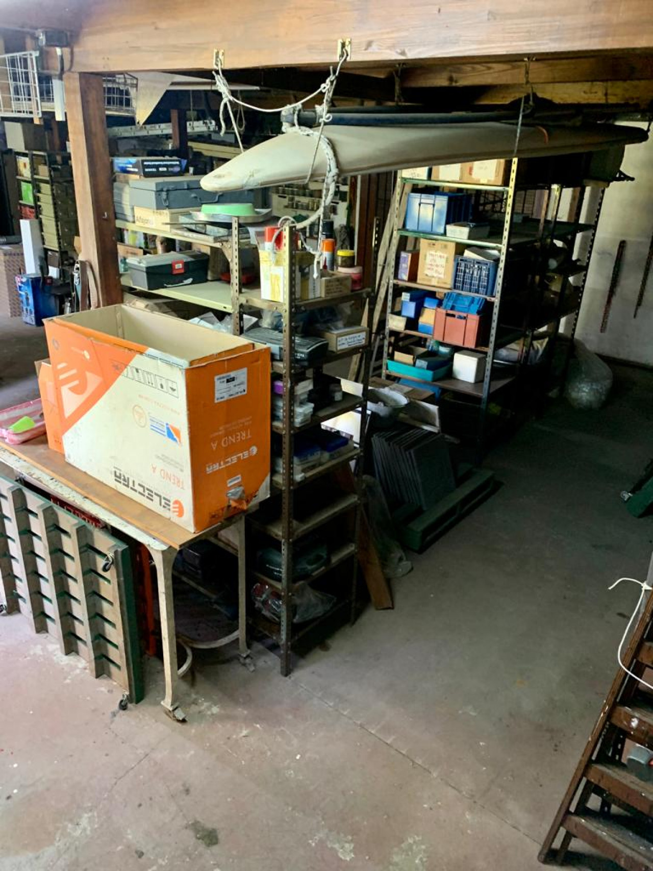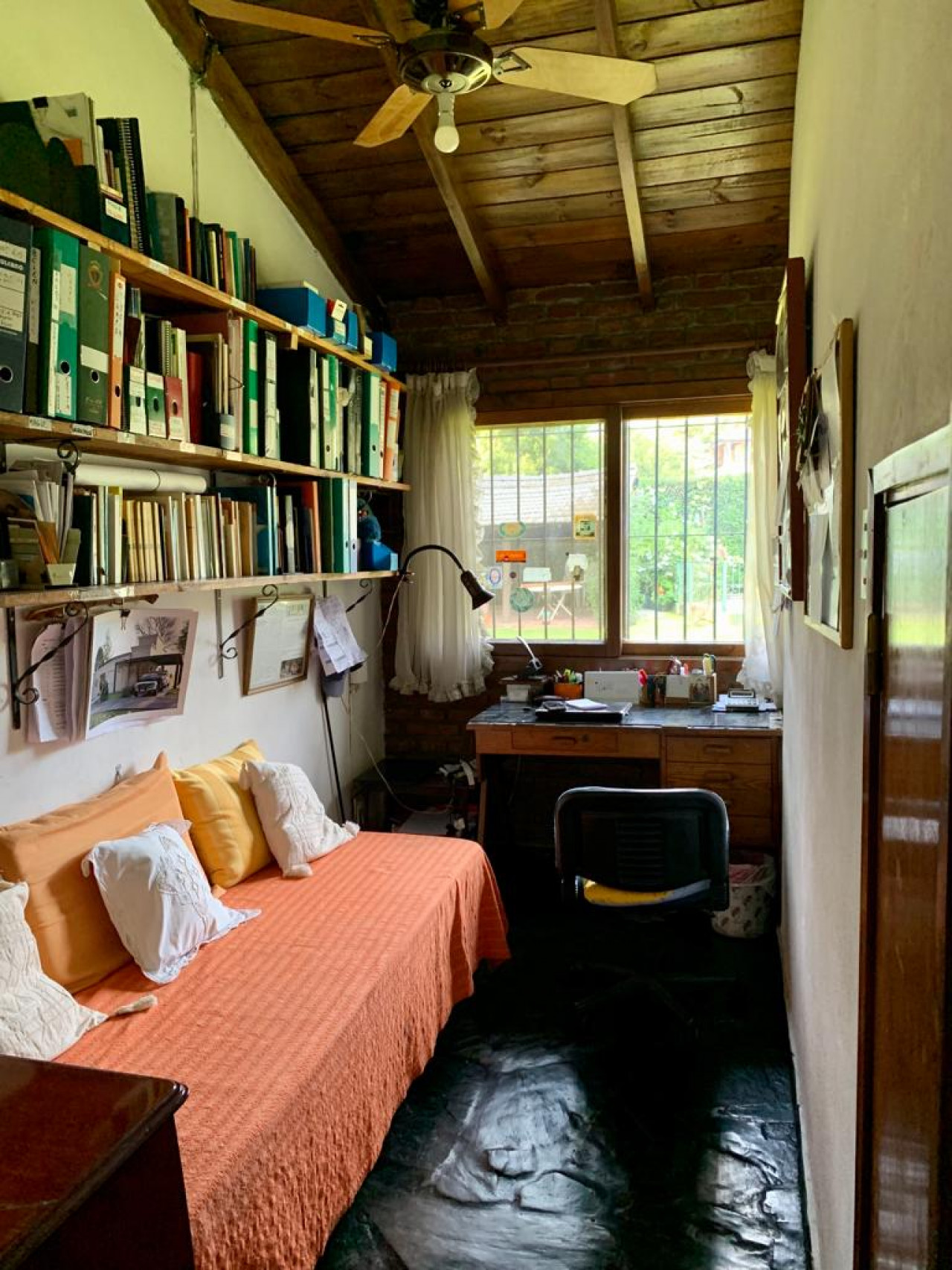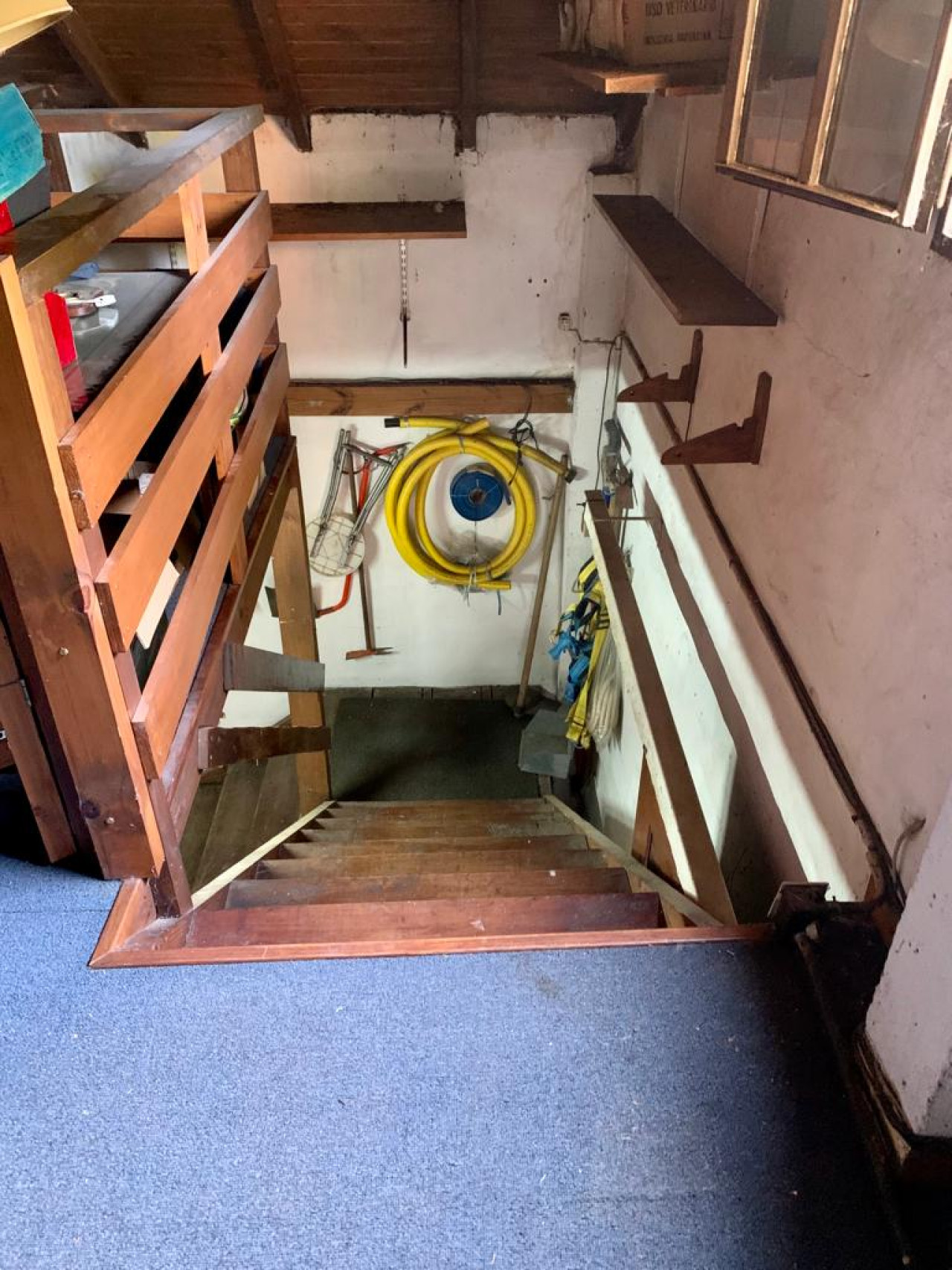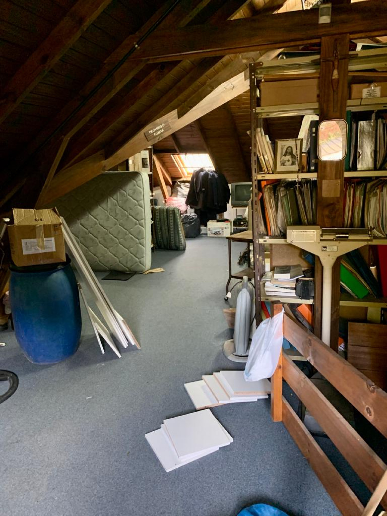 Garage cerrado con techo de madera con un amplio play room en entrepiso para usos múltiples,