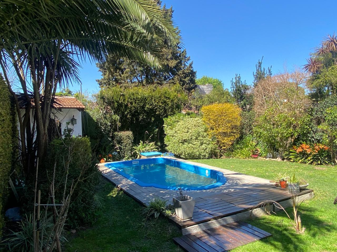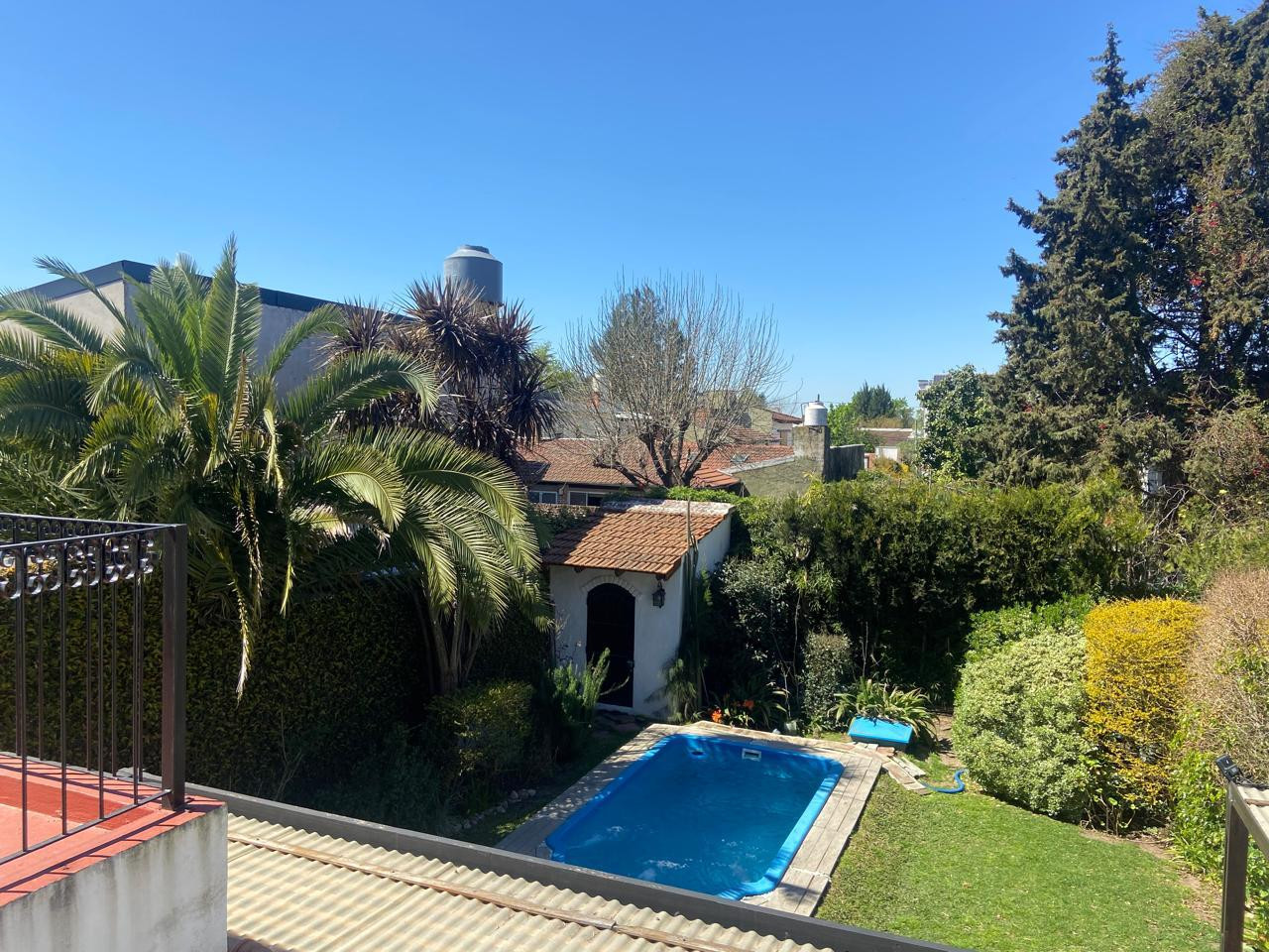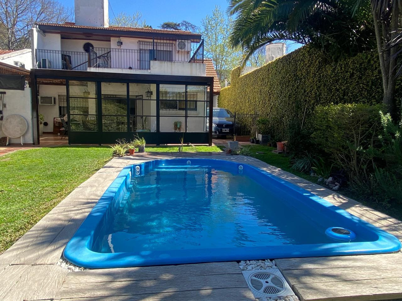 La casa tipo chalet esta muy bien mantenida, de muy buena calidad, sobre un lote de 325 m2, con jardin al frente, garage cubierto pasante, ingresamos al amplio living muy bien ambietado, con una escalera balcon que lleva a planta alta, donde un hall distribuye a 2 dormitorios, baño y terraza balcon al fondo. En planta baja ademas cuenta con un segundo baño, un amplio dormitorio y la cocina comedor desde donde salimos a una galeria con techado moderno cerrado con vidrios repartidos, que se integra al parque. La pileta tiene antiguedad de un año. Una hermosa parrilla y un parque diseñado con muchos colores.-