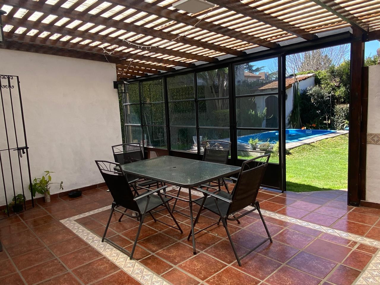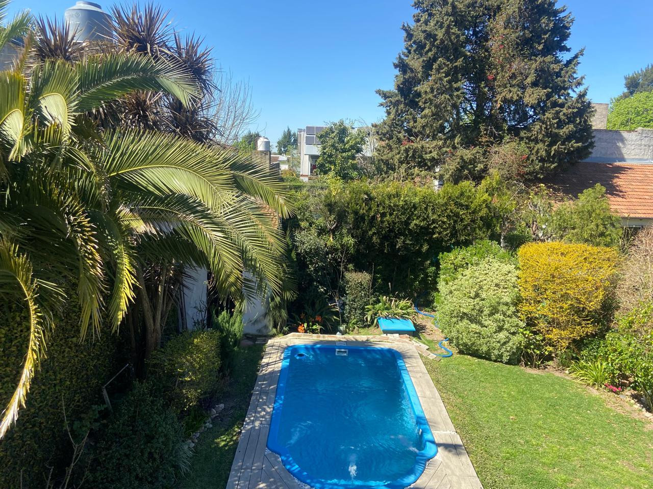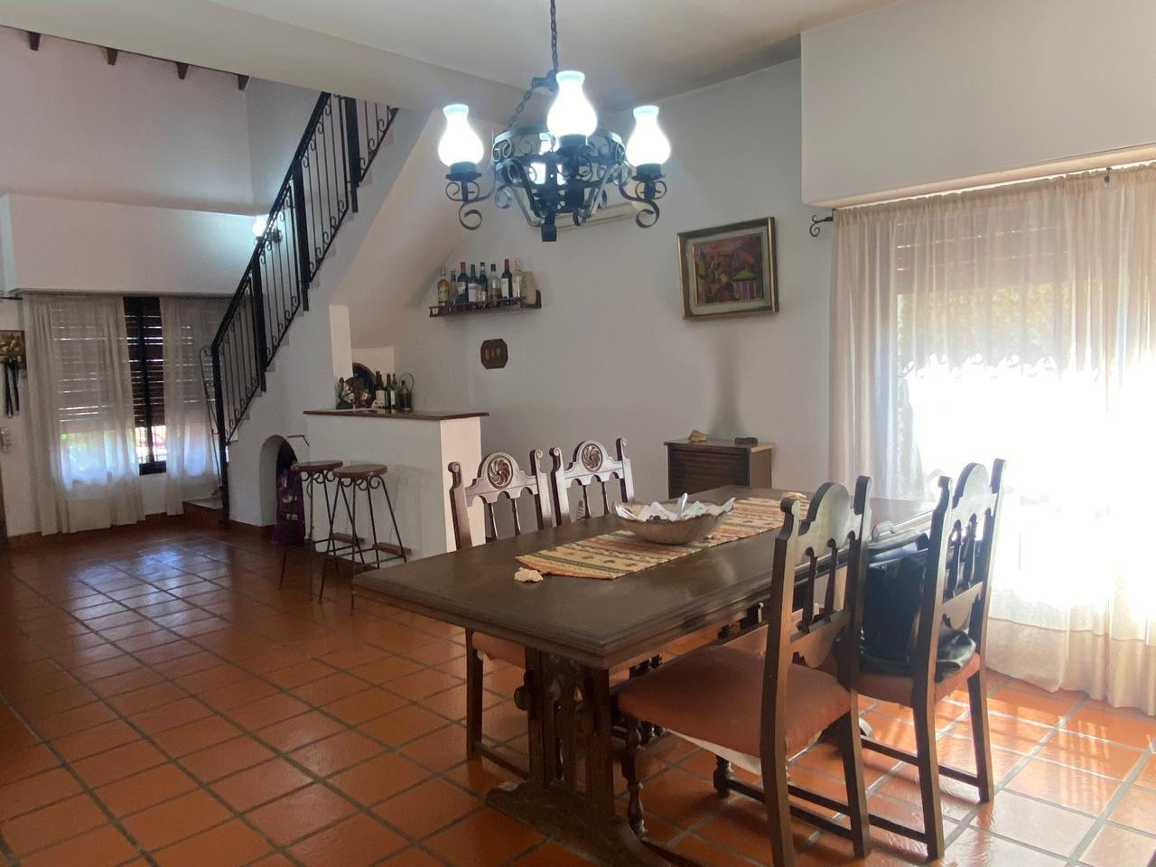 La casa tipo chalet esta muy bien mantenida, de muy buena calidad, sobre un lote de 325 m2, con jardin al frente, garage cubierto pasante, ingresamos al amplio living muy bien ambietado, con una escalera balcon que lleva a planta alta, donde un hall distribuye a 2 dormitorios, baño y terraza balcon al fondo. En planta baja ademas cuenta con un segundo baño, un amplio dormitorio y la cocina comedor desde donde salimos a una galeria con techado moderno cerrado con vidrios repartidos, que se integra al parque. La pileta tiene antiguedad de un año. Una hermosa parrilla y un parque diseñado con muchos colores.-