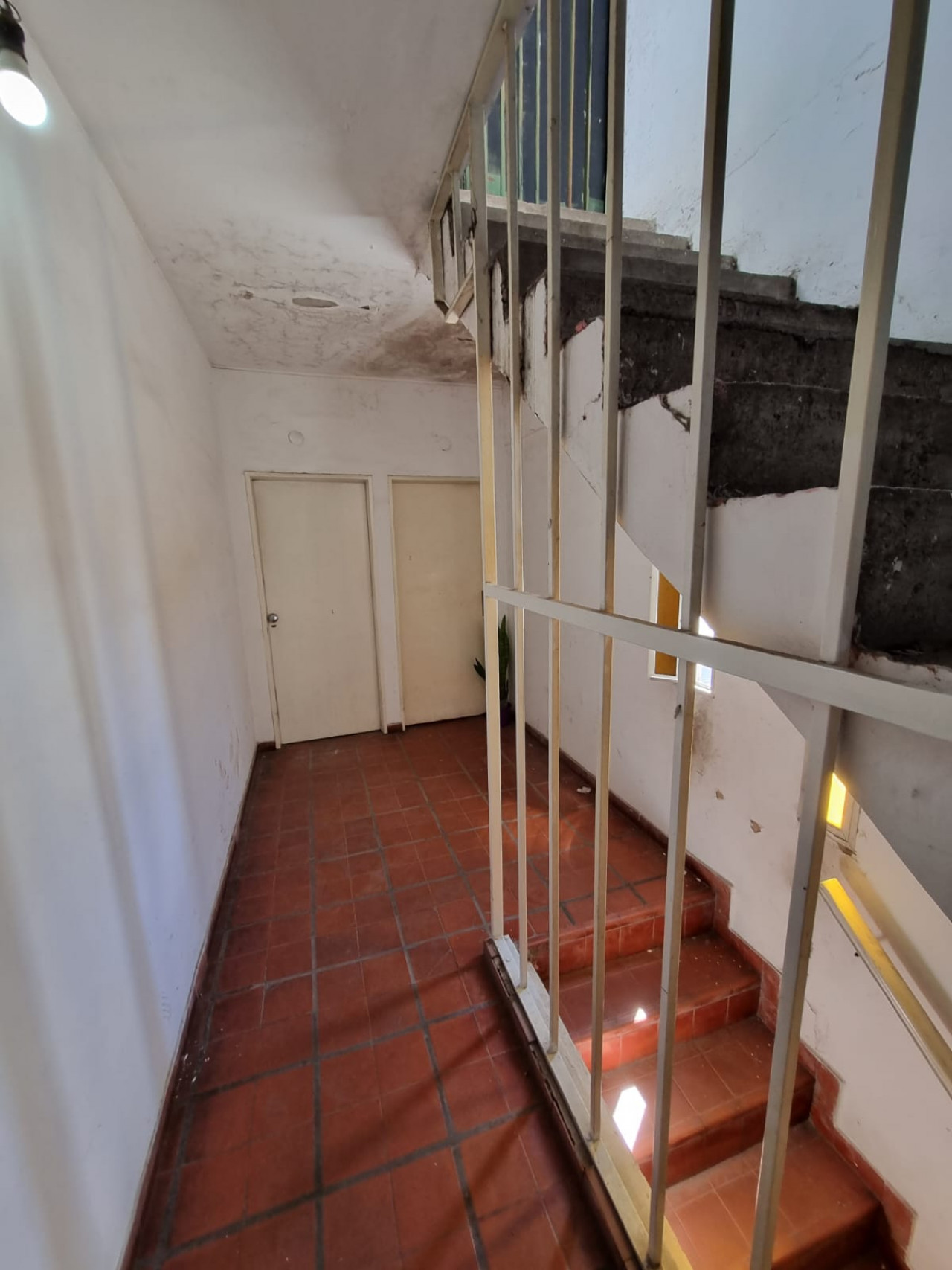 La escalera continua a la terraza, con posibilidad de seguir la construcción.-