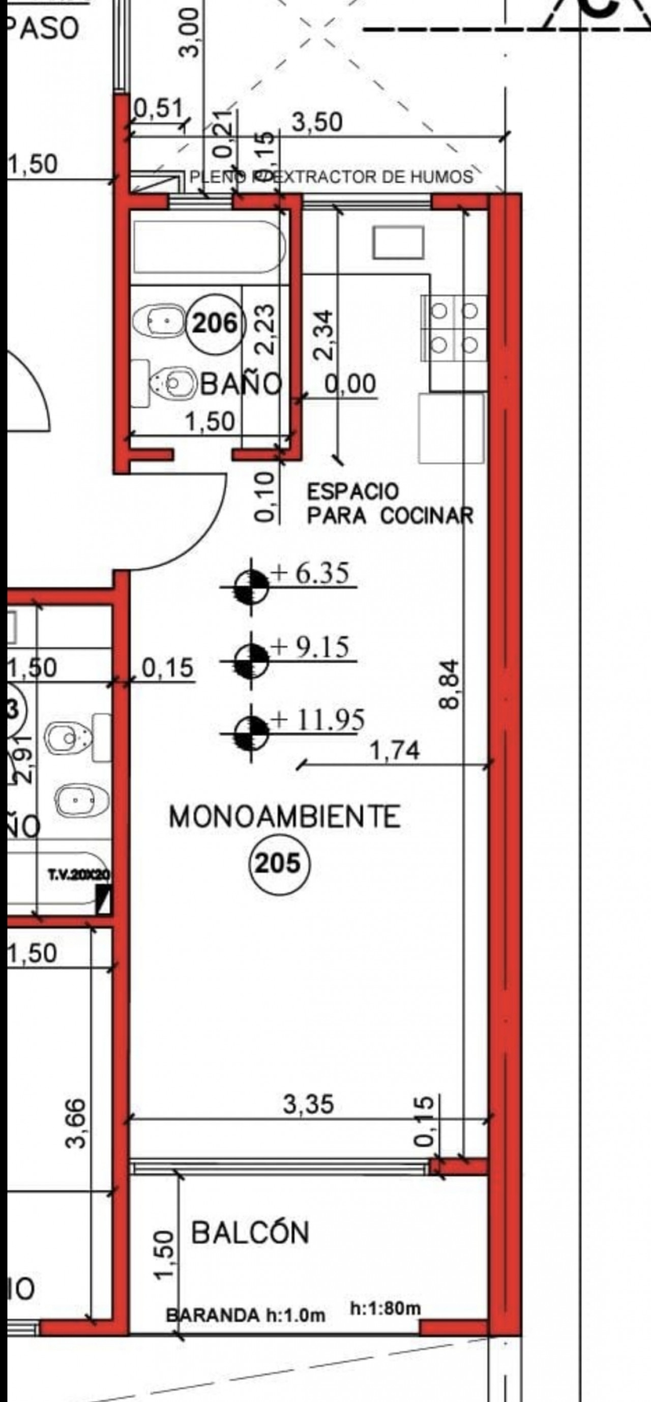 * Salida a balcón semi cubiebierto de 3,35 x 1.50.