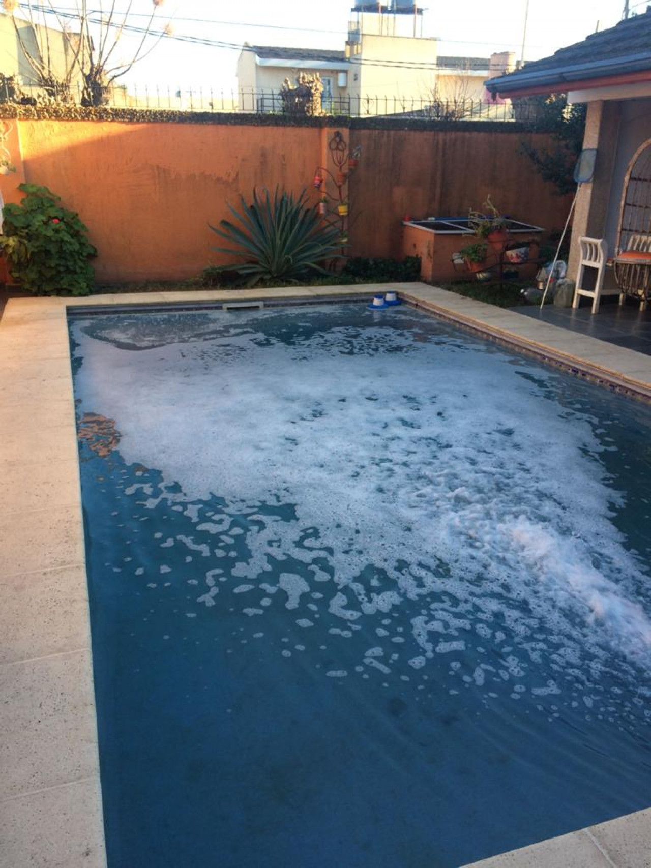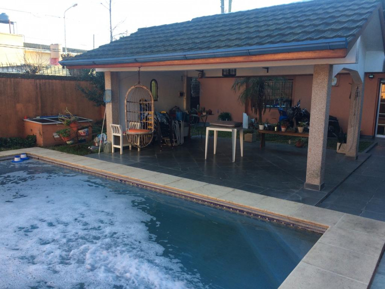 Chalet en excelentes condiciones c/dos dormitorios c/placard, Living en desnivel c/ muebles a medida, comedor diario y jardín de invierno. Pasillo de distribución y cocina con amueblamiento a medida. Baño completo c/bañera. Patio y parque. Sistema de alarma. Cochera c/portón automatizado, patio, quincho c/mesada, alacena y horno. Pileta de natación de 4x8 mts, habitación de servicio c/baño.