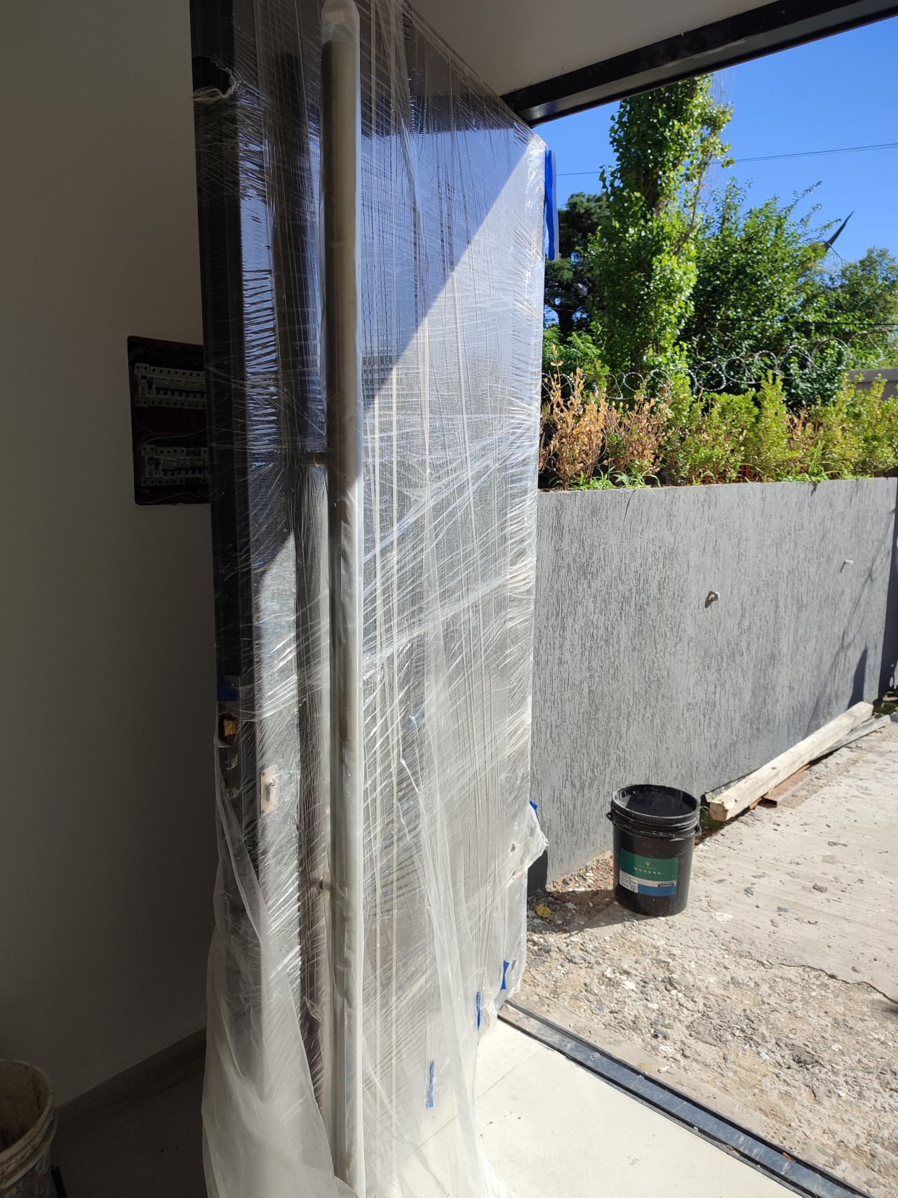 - Mamposterías con ladrillo hueco portante perimetrales de cada unidad funcional, revoque grueso, capa hidrófuga, revoque fino y enduido.