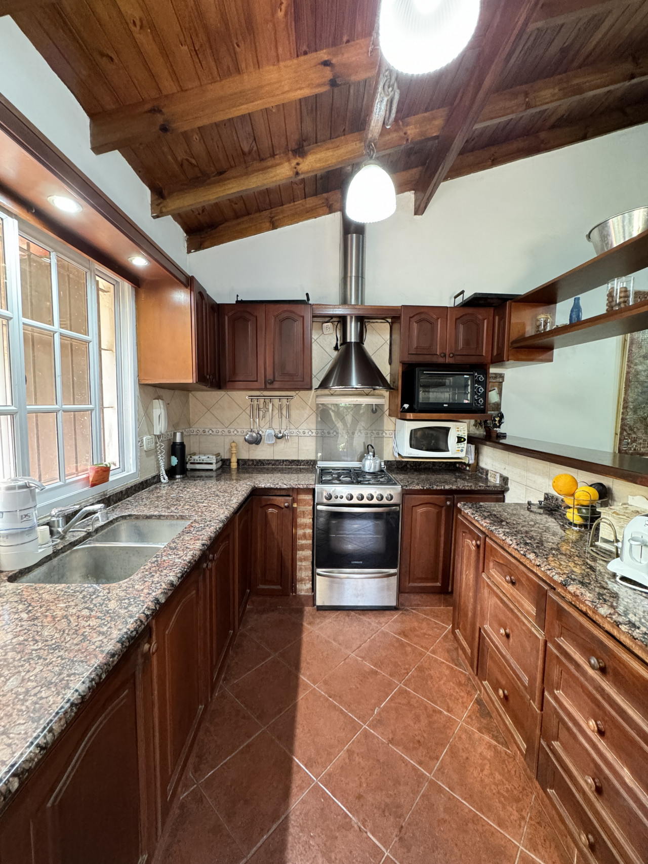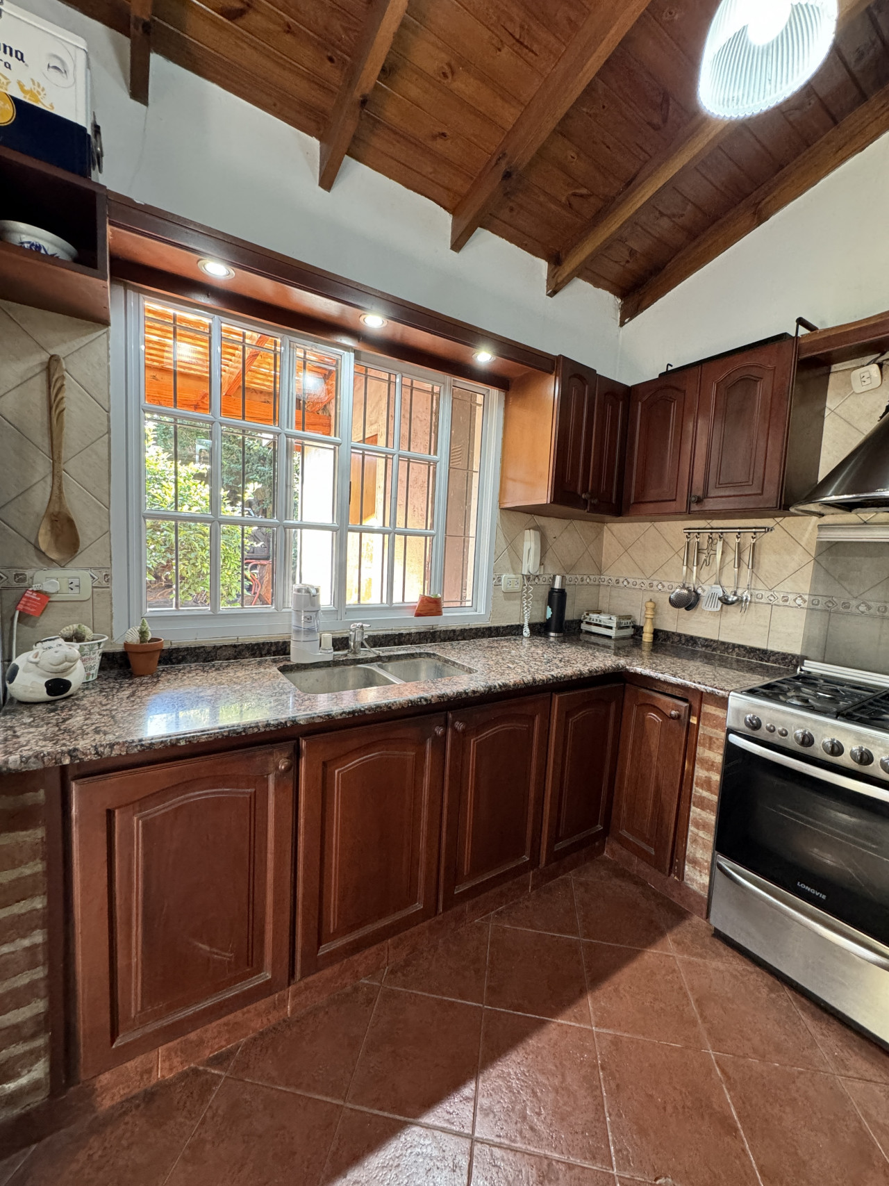 Amplio y cómodo living con hogar, cocina integrada al comedor mediante barra desayunadora, tres dormitorios bien distribuidos, baño completo, galería techada, lavadero y quincho semicubierto con toilette. Además, un hermoso parque arbolado con excelente orientación solar y espacio guardacoche para dos vehículos.