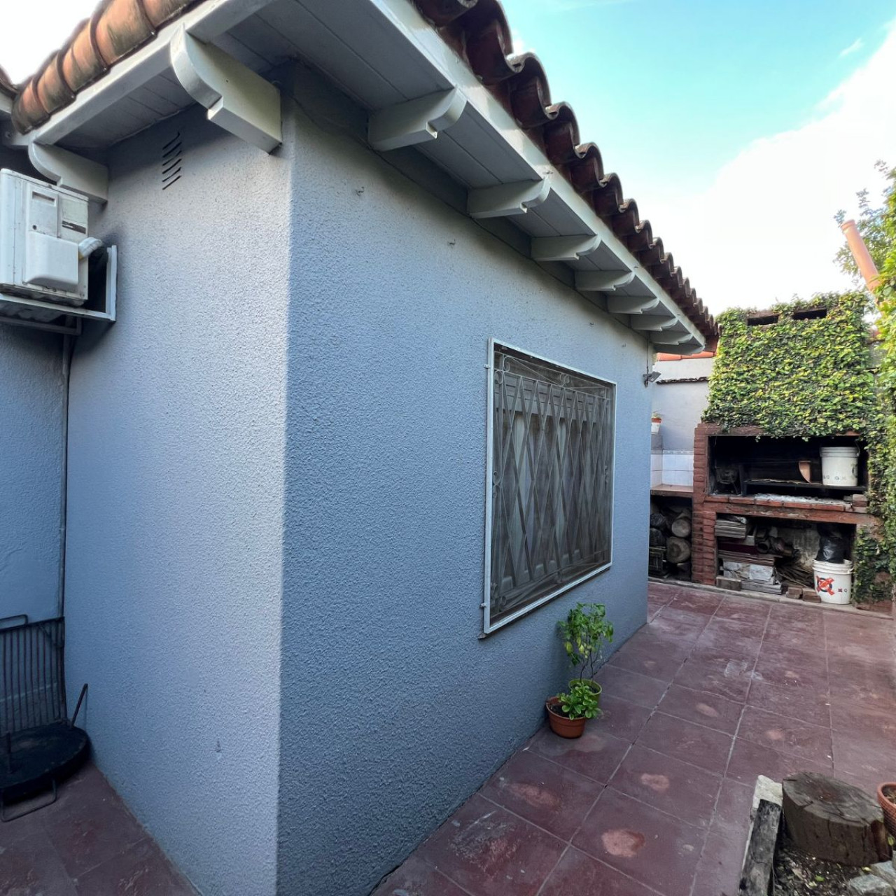 Patio con glorieta, parrilla y galpón/taller