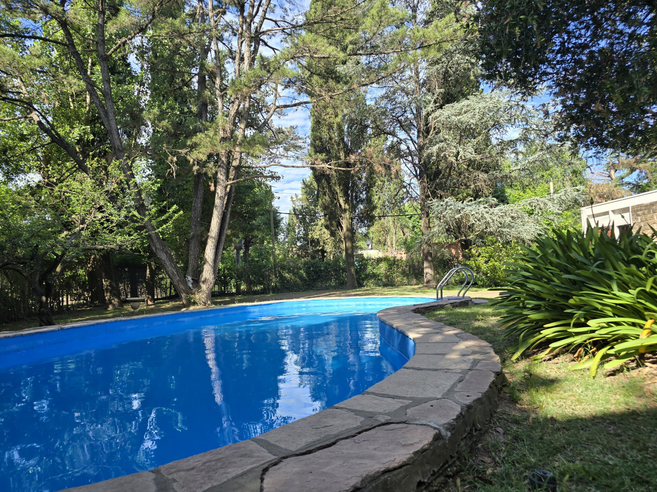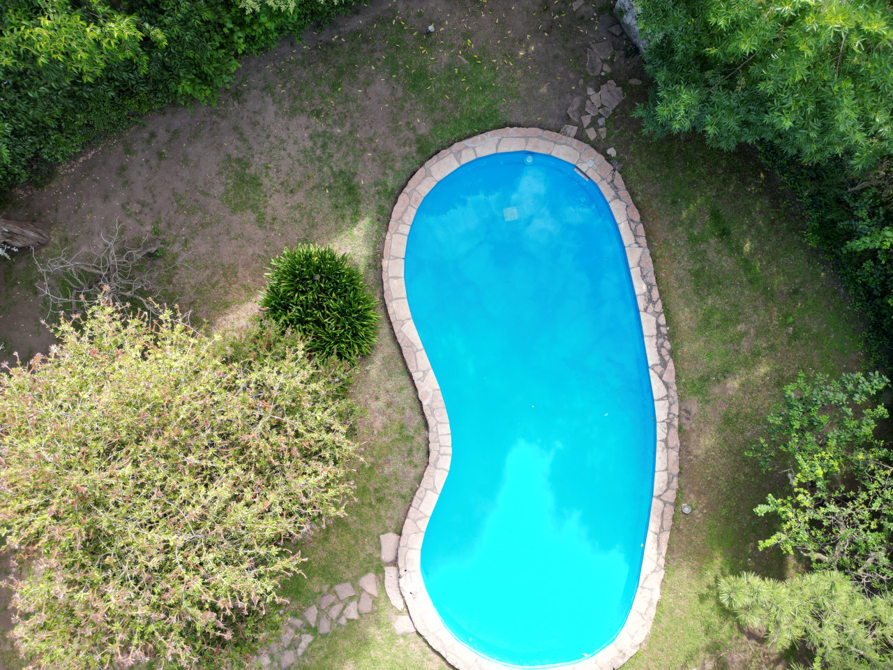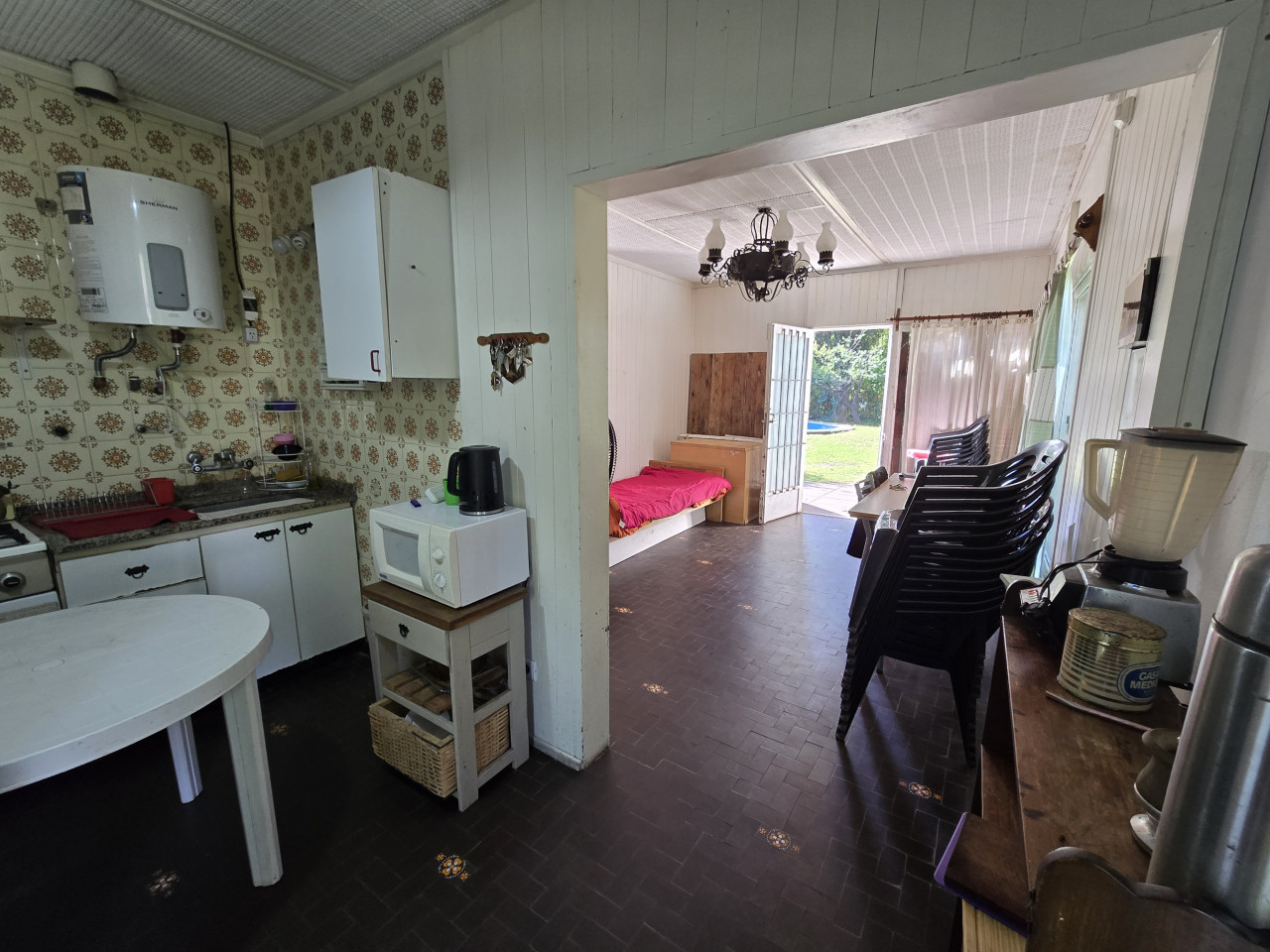 Cuenta con una casa en buen estado con 2 dormitorios, cocina comedor diario, 1 baño, con un total de 53,2 mt2 cubiertos, estructura de hierro, techo de chapa, alarma, pileta con su sistema de limpieza, quincho de paja con Parrilla y Sistema de Riego.