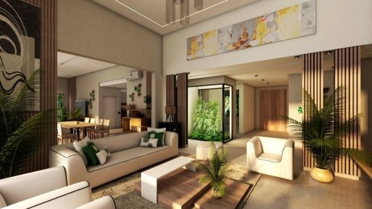 como blancos, grises y tonos tierra, creando una apariencia armoniosa y elegante Posee grandes ventanales logrando amplitud y luminosidad .