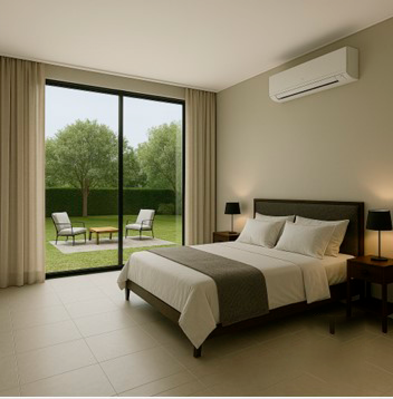 Posee losa radiante con caldera independiente y aire acondicionado frío/ calor en todos los ambientes .